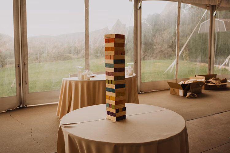 The Pavilion and ballroom offer full-service reception space with views continuing through large windows. You can celebrate with dinner indoors while still feeling connected to the scenery outside.