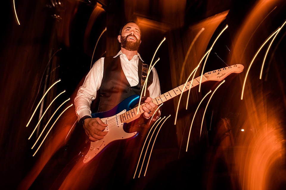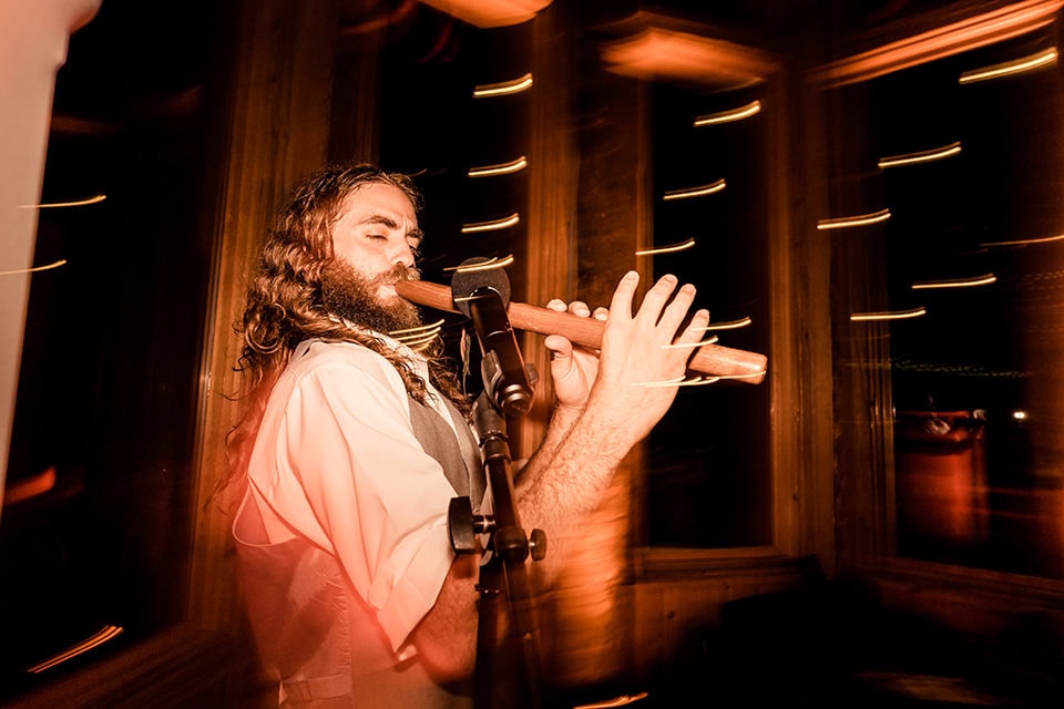 The energy at Gabby and Dan’s reception was electric, the air buzzing with eclectic FUN. The party soared to new heights as Dan’s brother took the stage, his lively tunes on the flute adding a unique charm to the festivities. Dan joined the musical spree, jamming away on his guitar.
