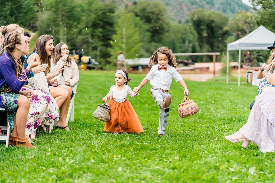As a photographer, I can attest that the T-Lazy-7 Ranch in Aspen is a visual feast with its idyllic location and awe-inspiring scenery. The mountains, the Aspen groves, and the creek all contribute to a setting that is both tranquil and inspiring. The day was made even more special by the addition of their fur baby Ruger to the ceremony.